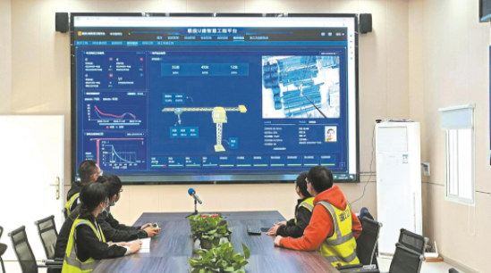 施工现场目前安装有1台垂直运输塔吊,运行中配备了智能塔吊可视系统,可实时显示多维度监测数据和吊钩监控画面。一旦现场发现隐患,可及时语音预警,预警信息通过手机APP自动推送给项目管理人员,管理人员根据预警信息督促整改。