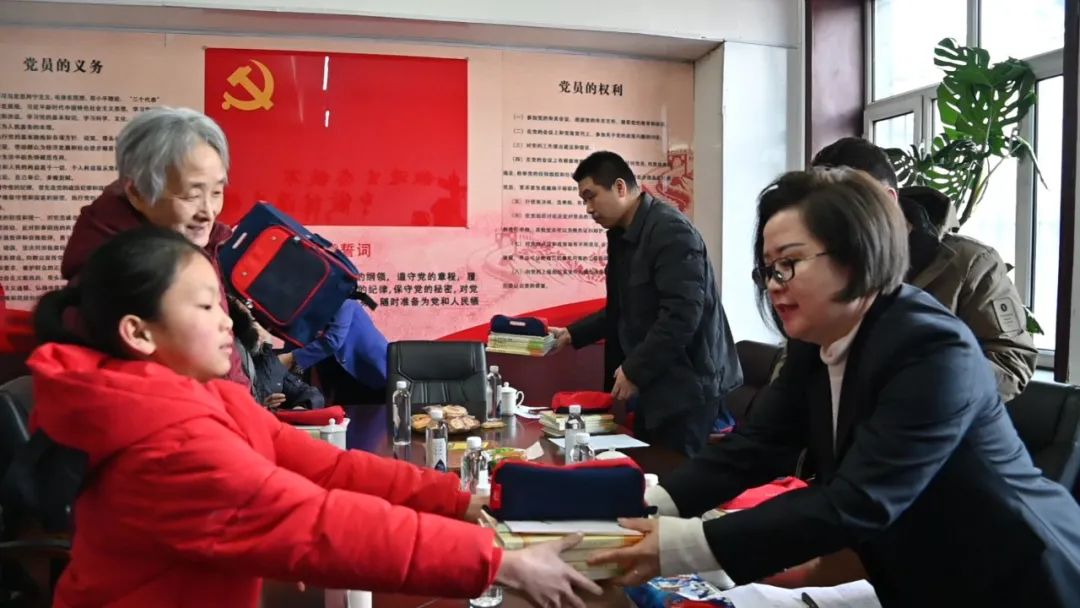 活动中,绥阳局公司的工作人员为小朋友们送去了书包及书籍刊物等学习用品,孩子们收到新年礼物,背上新书包,脸上洋溢出幸福的笑容。工作人员还与学生家长进行深入交流,了解孩子们生活和学习情况,并鼓励孩子们要努力克服生活上的困难,把磨炼当成生活和精神的财富,心怀理想、立志成才、乐观自信、自立自强。