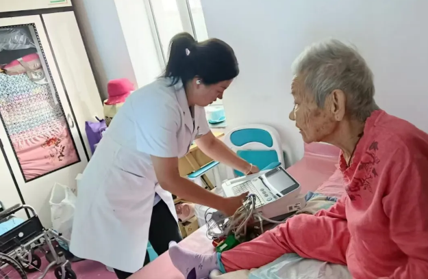 此次义诊,牡丹江林业中心医院专家诊疗团队还为特殊群体提供上门义诊检查服务。桦树河林场职工孙瑞新今年67岁,13年前因意外致残瘫痪在床,因行动不便无法看诊。专家们在了解到这一情况后,舍弃休息时间,组成医疗小组携带便携式诊疗设备入户为他进行了诊疗。 “由于长年卧床,多年来也没检查过身体,今天你们为我做了心电、彩超、血常规等检查,还针对我的身体现状给我制定了详细的康复训练计划,真是太感谢了……”孙瑞新向入户为自己诊疗的专家们表达着感激之情。