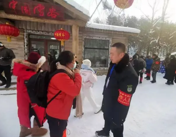 为确保游客能够尽情享受冰雪之旅,今年,中国雪谷景区在沿路增设文明旅游志愿服务点,并配备了60余名志愿者,为游客提供信息咨询、医疗救助、秩序维护等一系列志愿服务,搭建起了一个与游客沟通交流的平台,使志愿服务更加贴近游客需求。 走进雪谷景区,佩戴红袖标的志愿者们随处可见,“请问景区需要门票吗?”“可以开车进景区里面吗?”“周边还有什么景点可以推荐一下?”志愿者耐心地解答游客关于交通、景点等问题,热情周到地为游客提供帮助,用实际行动诠释了“奉献、友爱、互助、进步”的志愿服务精神。