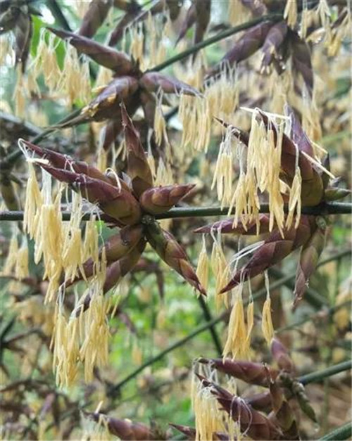 竹子开花周期较长,结实采收竹米更为稀有 竹子是天然可再生的绿色资源,现代科技发展不断开拓竹子的利用领域。20世纪80年代中后期,南京林业大学张齐生教授率先提出了“以竹代木”和“以竹胜木”为核心的竹材工业化利用理念,发明了竹材胶合板生产技术,开创了竹材工业化利用的先河。随后,各地开发出了竹质地板、竹家具板及各种工程结构用竹材人造板,生产规模快速壮大,加工技术走向成熟。 进入21世纪后,科学家们又成功开发竹缠绕压力管,最大限度发挥竹子拉伸强度高和柔韧性好的材性特点,在水利输送、农业灌溉和城镇管网中已得到实际应用。我国竹产品已形成100多个系列近万种产品,应用于建筑、装饰、家具、造纸、包装、运输、医药、食品、纺织、化工等10多个领域。2016年,全国竹产业总产值达2109亿元,出口额占全球的60%以上,成为世界上最大的竹产品出口国。