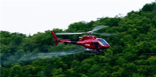 7月2日,一架满载防治药剂的直升飞机在东京城林业局三道林场的空地上腾空而起,在GPS定位系统的指引下,对49、62、94林班的5000亩红松林实施松梢螟“精准打击”,一场由飞机作业的森林防治“战役”正式打响……