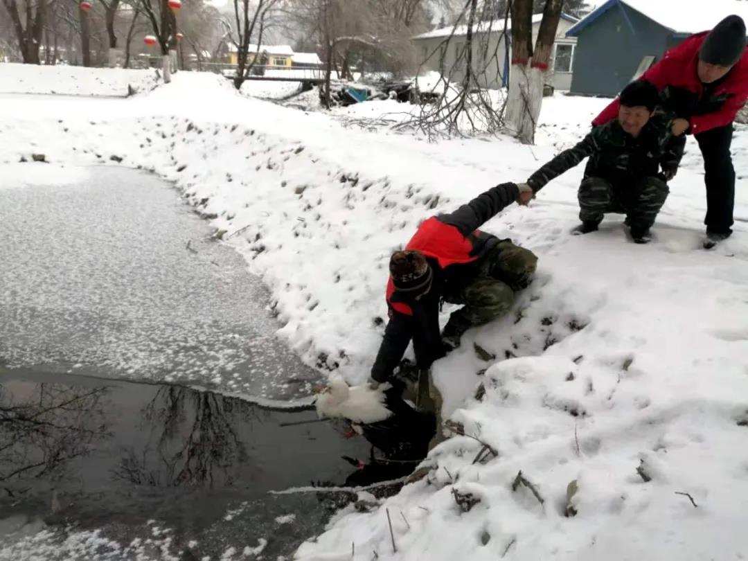 日前,山河屯林业局有限公司永胜林场干部职工在清理场区积雪的时候,偶然间发现在场部东侧的小池塘的涵洞口处,停留着一只大鸟,当时这只长腿长喙、浑身雪白、翅膀黑羽的大鸟,呆立在冰冷的溪水中,就像雕塑一样,工作人员随即将这只大鸟抱回到场部喂食,并在网上查找到这种水鸟的名字是国家一级保护动物“白鹳”,属大型涉水鸟,为长途迁徙性鸟类。 这只“白鹳”的翅膀尖处有受伤的血迹,林场卫生所的大夫对其进行了简单的包扎处理。 同一时间,永胜林场与公司有关部门联系,山河屯局森林资源管理部相关人员的陪同下,当天下午,永胜林场派专人冒着风雪驱车350余公里,将这只受伤的“白鹳”,送交到哈尔滨市阿城区野生动物救助站,等待动物专家的进一步鉴定。 |