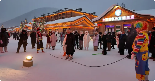 ![]() 今年的雪乡故里,将民俗喜庆氛围推向了新高潮。安塞腰鼓、东北大秧歌与二十四节令鼓的快闪表演随机上演,鼓点与欢笑声交织,为冰雪秘境增添喜庆氛围。而全新推出的 NPC 体验式抢亲节目,成为文旅体验的亮点,活动融合达斡尔族迎亲习俗与现代婚庆互动玩法,游客可化身伴郎伴娘出谋划策,或作为围观乡亲加油喝彩,在趣味关卡与红包祝福中深度感受东北婚嫁文化的热闹与温情。 “来到雪乡故里,看到了安塞腰鼓和东北扭大秧歌,非常好看,也感受到了东北最原汁原味儿的过年气息,感觉特别棒。”沈阳游客董微开心地说。 河北游客未来则对抢亲互动活动赞不绝口:“抢亲活动感觉太有意思了,就从来没见过这种场面,真的感觉很棒,很开心,来到雪乡故里这次真的太值得了。”
