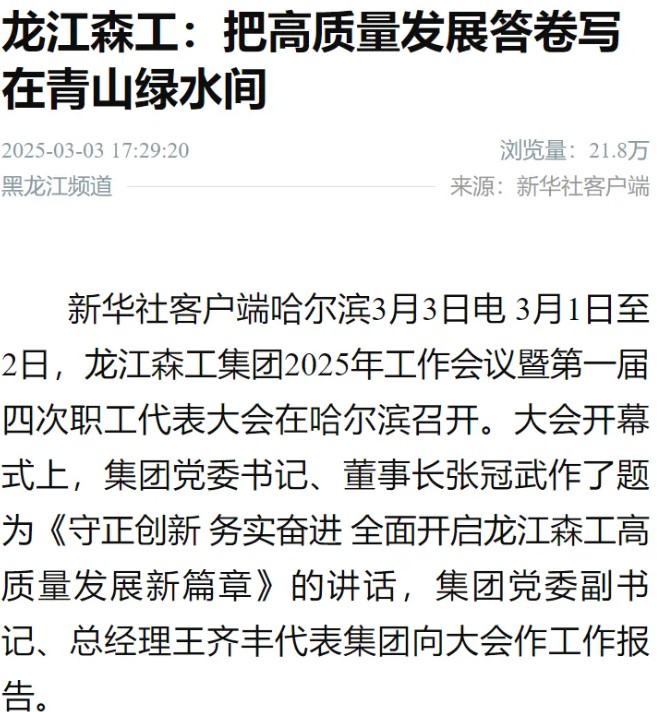 新华社客户端哈尔滨3月3日电 3月1日至2日,龙江雷速(中国)一站式服务官网集团2025年工作会议暨第一届四次职工代表大会在哈尔滨召开。大会开幕式上,集团党委书记、董事长张冠武作了题为《守正创新 务实奋进 全面开启龙江雷速(中国)一站式服务官网高质量发展新篇章》的讲话,集团党委副书记、总经理王齐丰代表集团向大会作工作报告。