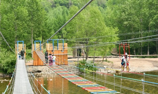 为了让游客游客拥有更加丰富多元的游玩体验,原始林景区在今年精心打造了多个特色项目。“松属”露营地完美融合了迷人的自然美景、完备的设施以及舒适的体验,成为自驾爱好者露营的绝佳之选;低空小缆车运行平稳,乘坐其中穿梭于山林之间,能够以独特视角近距离欣赏秀美风光;挑战桥横跨河流之上,每迈出一步,桥体都会随之晃动,带来心跳加速的刺激体验;高空自行车极具挑战性与趣味性,让游客在感受空中与河流双重刺激的同时,与绿水青山亲密相拥。此外,树屋滑梯、松果迷宫、昆虫观察站等项目深受孩子们喜爱,他们在尽情玩耍的过程中,还能学习森林生态知识,培养对大自然的热爱之情。 “太好玩了,有一种在水中滑翔的感觉,畅游在绿水青山之间,感觉特别棒。”惊险刺激的水上自行车让来自哈尔滨的刘娜玩的不亦乐乎。 “我家孩子六岁,刚才玩了奇趣乐园,感觉挺刺激的,也特别好玩,孩子的收获也特别大。”游客吴红丽开心地说。