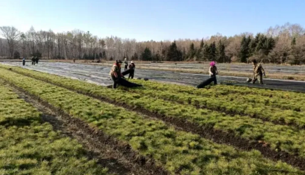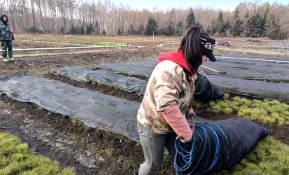 在铺设防寒网过程中,工作人员分工明确、配合默契,他们按要求将防寒网平整地覆盖在红松幼苗上,确保每一株红松幼苗都能得到充分保护。同时,工作人员还对防寒网进行了加固处理,防止被大风吹起,影响防寒效果。 “幼苗防寒工作至关重要,关系到明年春季幼苗的生长和成活率,幼苗防寒盖土可以有效地防止苗木根部受冻,减少冬季寒风和低温对幼苗的伤害。目前,我们全员出动,全力以赴,对苗圃两三年生长的红松幼苗进行覆土工作,确保每一棵幼苗都能安全度过寒冬。”青山苗圃负责人费秀梅介绍说。