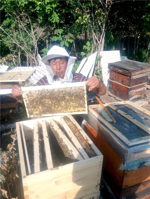 创业奋斗当标兵 经过多年的创业发展,他不仅成为了林区黑蜂养殖业的致富标兵,而且还成为了饶河县黑蜂养殖协会的成员,养蜂技术娴熟,经验丰富。他每年注意观察物候发展变化,能够随季节、蜜源等因素调整蜂群状况,并且,经常与附近东方红局、胜利农场、饶河县等地蜂农交流养蜂技术、共享市场信息,寻求发展动向。因此每年他的蜂群每箱单产都比别人的高许多,黄波萝蜜、椴树蜜、杂花蜜品种多,质量好,效益高。2012年,饶河地区养蜂属于平年,有部分地区甚至是欠收,采的蜜仅够喂蜂的。但是,他家当年产蜂蜜13000多斤,产值11万余元,去掉买糖等成本费用,纯收入也达到了5万余元。 为了鼓励职工大力发展黑蜂养殖项目,林业局出台一系列优惠政策,林业局局长、党委书记还多次到他的养殖基地进行过调研,向他了解养殖情况,鼓励他养好蜂,多养蜂。由于他养蜂产业事迹突出,2012至2017年,连续五年被评为全局产业发展的标兵个人。 创业引领做旗帜 李北成致富没有忘记自己是一名党员,需要发挥服务和示范引领作用;没有忘记身边职工群众,需要就业创业过上幸福生活的期盼。 2014年5月初,威山林场部分蜂农在检查管理蜜蜂时,发现了严重的盗蜂现象,蜂农们眼看着一箱箱蜂被咬死,急得满嘴起泡,愁得连饭都吃不下了。他得知这一情况后,四处寻“医生”,找能人,及时聘请牡丹江农科院教授吕云岭到威山为蜂农进行技术指导,现地指导蜂农处理盗蜂现象,及时防治了盗蜂,减少了蜂农的经济损失。同时,向年龄较大的蜂农介绍了近几年出现的养蜂新技术和新方法,并不厌其烦地向蜂农们讲解了山区养蜂的四季管理、病虫害防治、繁殖及分蜂、养蜂用具等专业知识,提升了蜂农们的技术水平和抵御灾害的能力。 2014年9月21日早晨,李北成在检查自家蜜蜂时,发现喂过的糖水有少量结晶现象。作为养蜂技术员的他马上想到的是全场养蜂户,他顾不得细看自己家蜜蜂的情况,挨家挨户通知养蜂户们立即检查自家蜜蜂的饲喂情况。通过检查发现新养蜂户李功义家50多箱蜜蜂喂的糖水已大量结晶。喂过的蜜蜂就等于白喂了。幸亏发现的及时,否则这50多箱蜜蜂在过冬时将全部饿死。李功义夫妇上火吃不进饭,他一边安慰夫妇俩,一边帮着想办法。他从自家和老养蜂户翟学豪家筹集到120张空脾无偿给李功义使用,并每天抽出时间帮着检查蜜蜂,指导他重新饲喂。经过一个星期的努力,50多箱蜜蜂已全部重新喂完,避免了他家蜜蜂在过冬时全部饿死的损失,把损失减少到最小。 有一天傍晚六点钟,新养蜂户王燕家蜂子出现了聚堆现象。李北成接到电话时,正在吃饭,他二话没说,撂下碗筷,立即赶到王燕家,他仔细检查了蜂箱内的蜜蜂,发现是王台多了,造成蜜蜂聚堆,准备逃跑。他当即给蜜蜂分了箱,一箱分成三箱,避免了蜜蜂逃跑,减少了养蜂户的损失。 幸福都是奋斗出来的。在迎春林区创业致富的海洋中,李北成尤如一座最闪耀的灯塔,时时照亮着职工群众养殖创业的奋斗之路。说起他引领职工群众走上林下养蜂黑蜂创业致富之路的故事,受过他扶持和帮助,目前已走上创业致富路的林场职工杨兴国、赵德森、姜永明、李功义等多名职工有说不尽的感激话语。在他旗帜般的示范引领下,经过几年的发展,威山林场职工群众养蜂规模不断扩大,到目前为止,全场黑蜂养殖业已发展到了2500箱,绿水青山真正成为了林场职工群众创业奋斗的乐园,成了勤劳致富的“金山银山”。 |